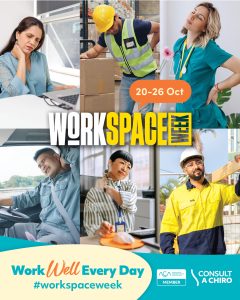 An initiative of the Australian Chiropractors Association (ACA), WorkSpace Week is committed to ensuring Australia’s workforce can ‘work well every day’ by reducing the occurrence and impact of WMSDs caused by physical stress, mental stress, repetitive work and poorly set up non-ergonomic workspaces.